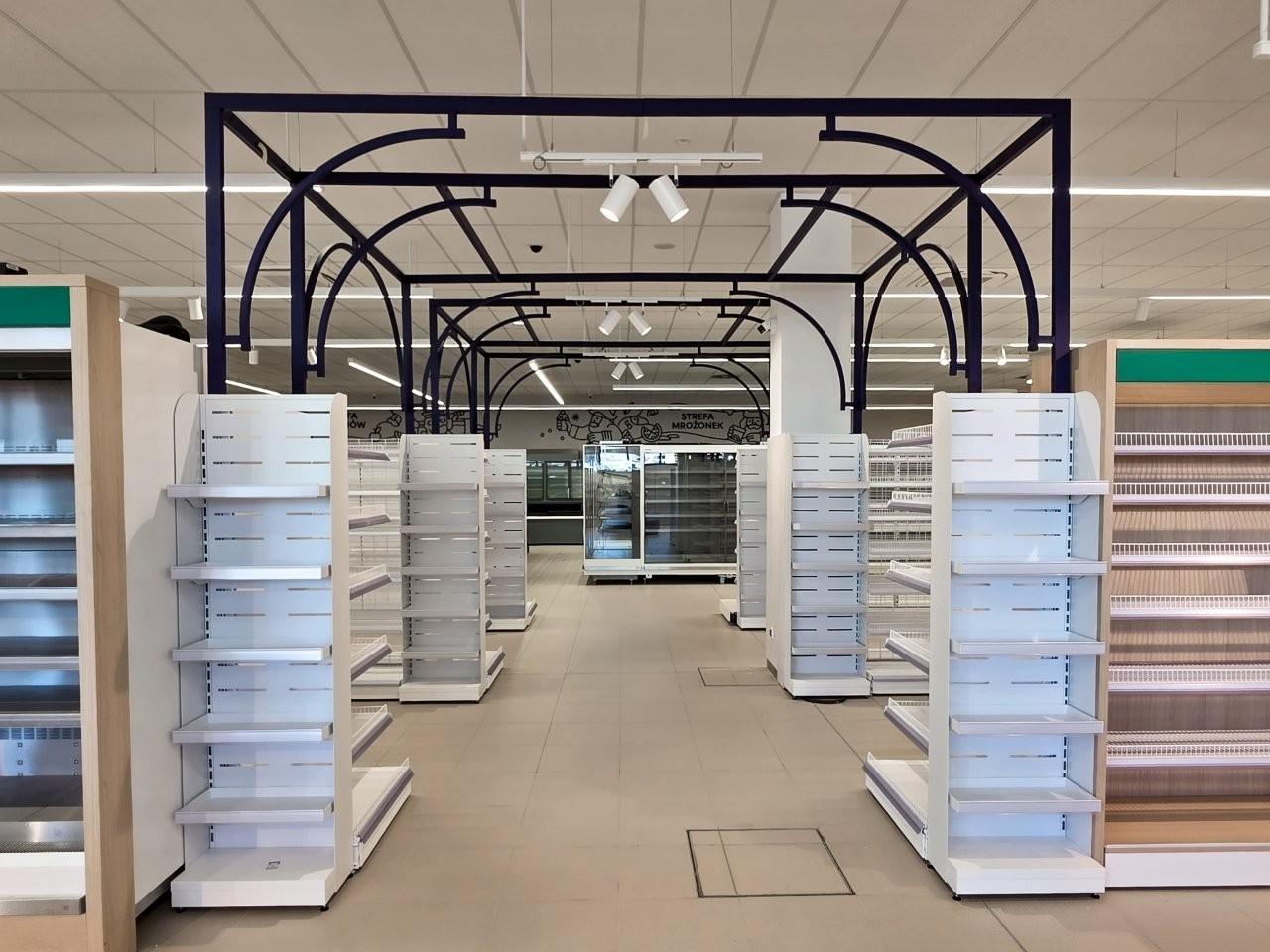 Merkus kontynuuje także praktykę indywidualnego projektowania każdej placówki. W Bąkowie-Kowalach aranżacja stawia na jasne, nowoczesne wnętrze i poczucie przestrzeni – tak, aby zakupy były przyjemne i szybkie. Zadbano również o osoby z niepełnosprawnościami - dla nich dostępne będą specjalistyczne wózki zakupowe.