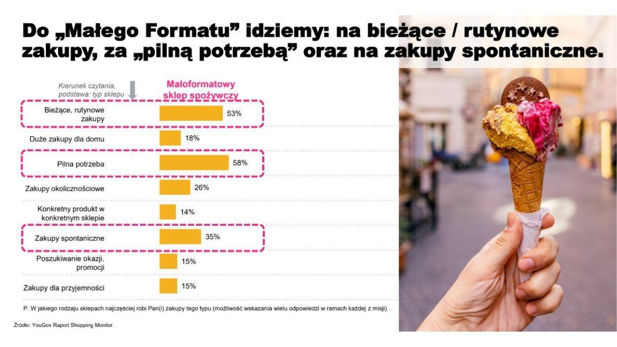 Do małego sklepu klient idzie z trzech powodów: na bieżące/rutynowe zakupy, za „pilną potrzebą” oraz na zakupy spontaniczne. Nie ma co ukrywać, silną stroną lokalnych sklepów są kategorie nazywane “magnesami”. Są bowiem takie grupy produktów, których udział w koszyku FMCG jest znacząco wyższy w sklepach małoformatowych w porównaniu z całą Polską.